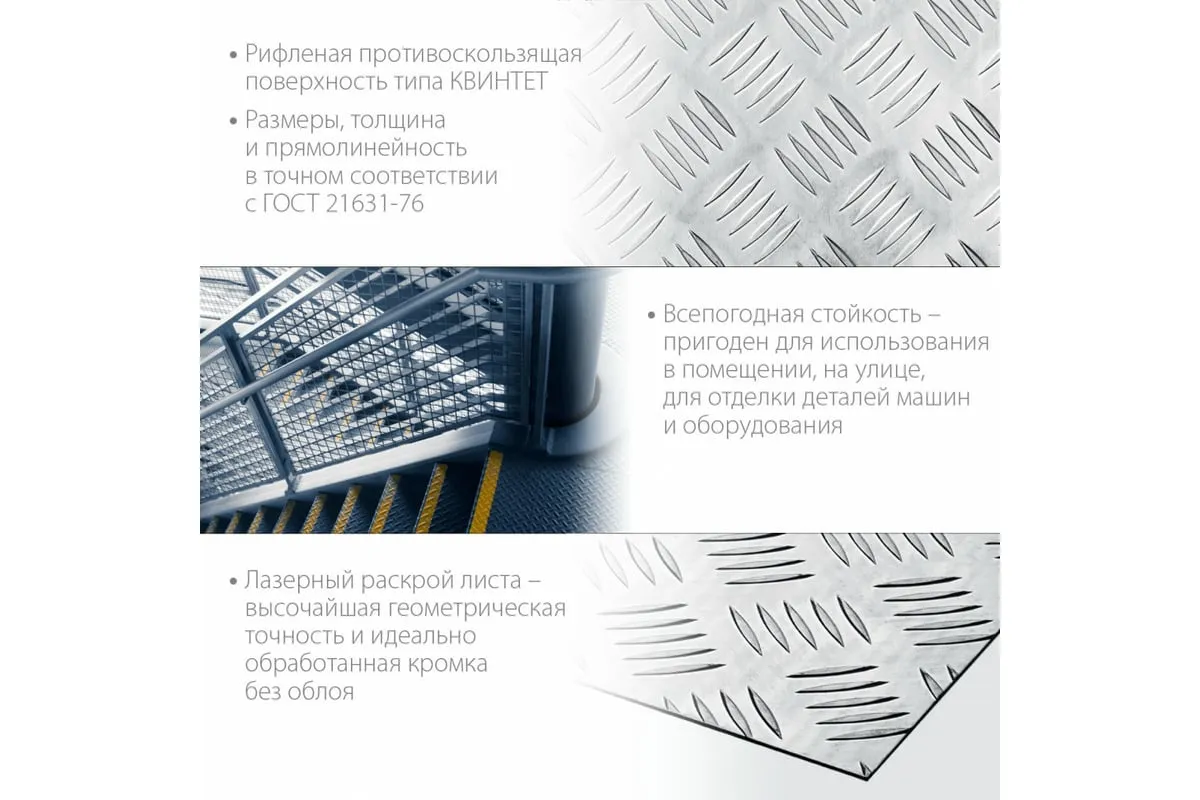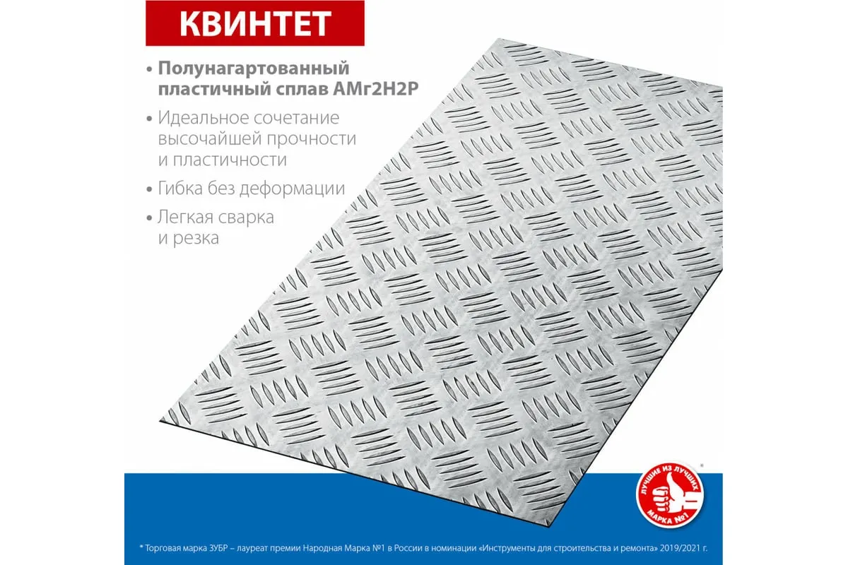 Алюминиевый рифленый лист ЗУБР квинтет, 300x600x1.5 мм 53833 используется при обустройстве разнообразных помостов и напольных уличных покрытий. Кроме того, листовым алюминием обшивают лестничные ступени, закрывают вентиляционные решетки, а также создают разные конструкционные элементы и декоративные панели, которые рассчитаны для работы с небольшими нагрузками.