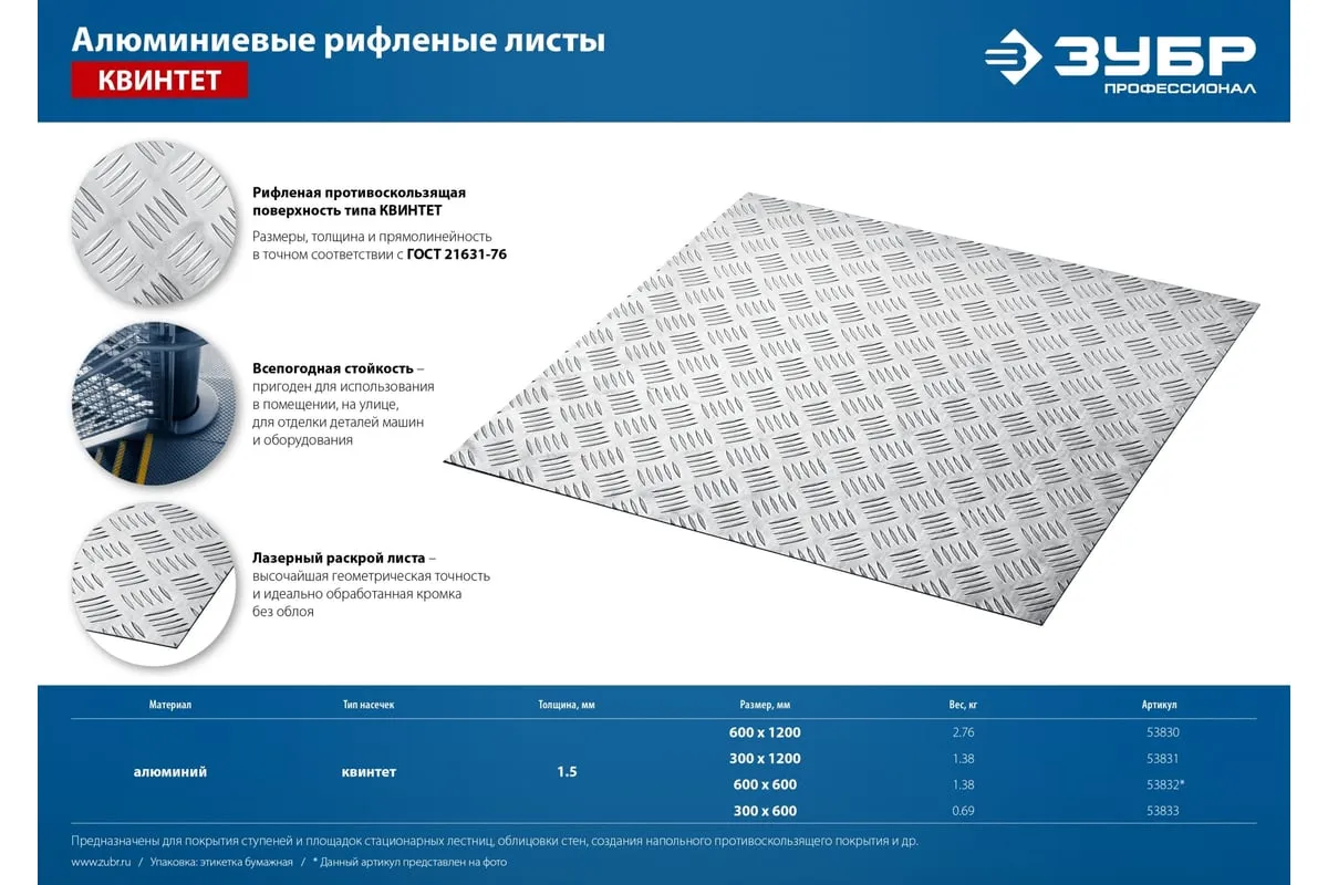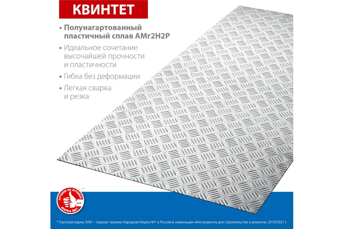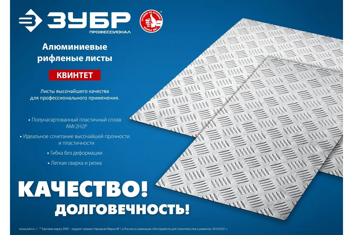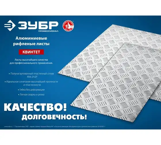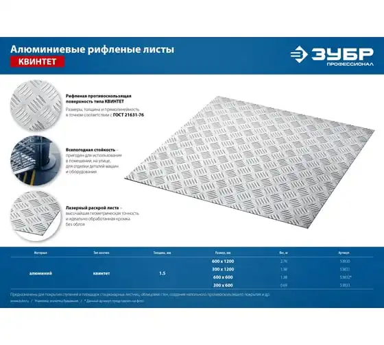 Алюминиевый рифленый лист ЗУБР Квинтет 600x1200x1.5 мм 53830 - лист высочайшего качества для профессионального применения.