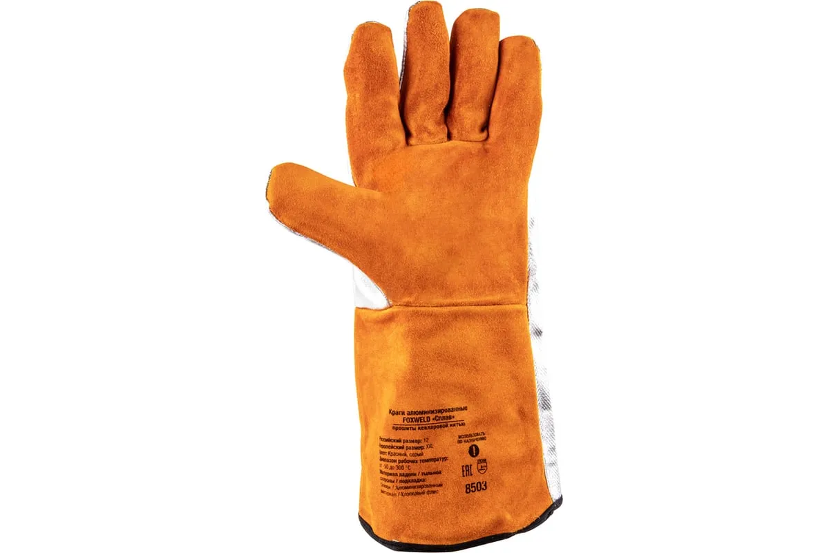 Ладонная часть краг выполнена из жаропрочного кожевенного спилка, а тыльная сторона изготовлена из алюминизированного материала. Они имеют высокую устойчивость к воспламенению, конвективному теплу, тепловому излучению, большому выбросу расплавленного металла.
