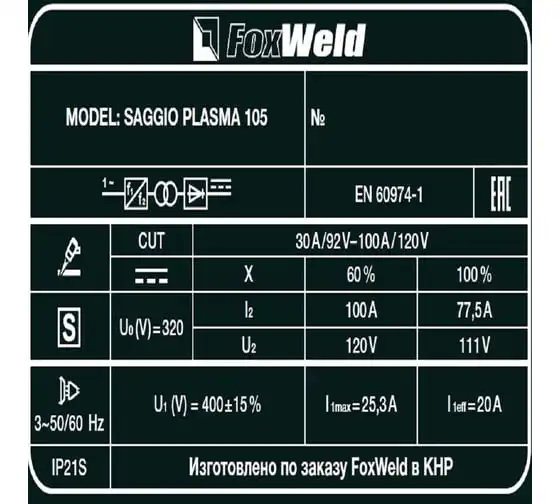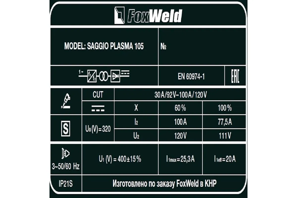 Плазменная установка Foxweld Saggio Plasma 105 предназначена для работы с металлом толщиной до 40 мм. Источник питания резки может работать с любыми стальными сплавами и с цветными металлами.