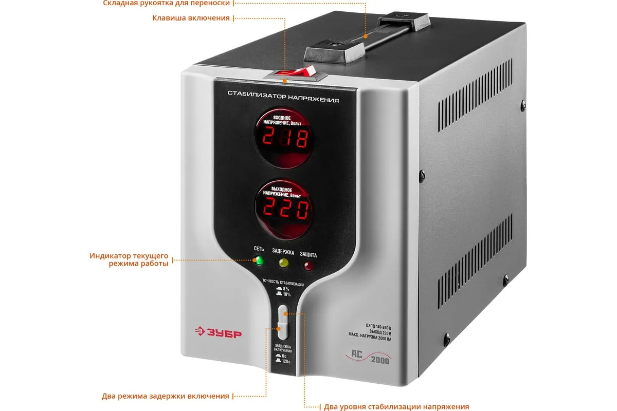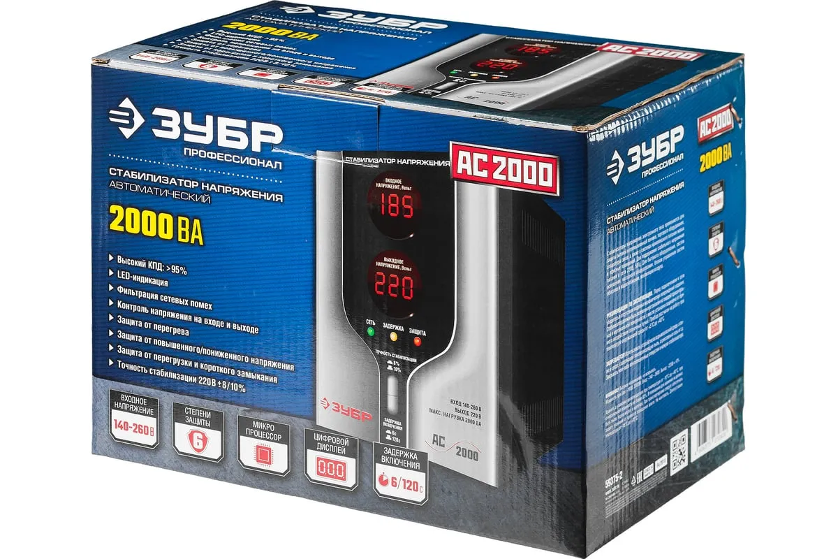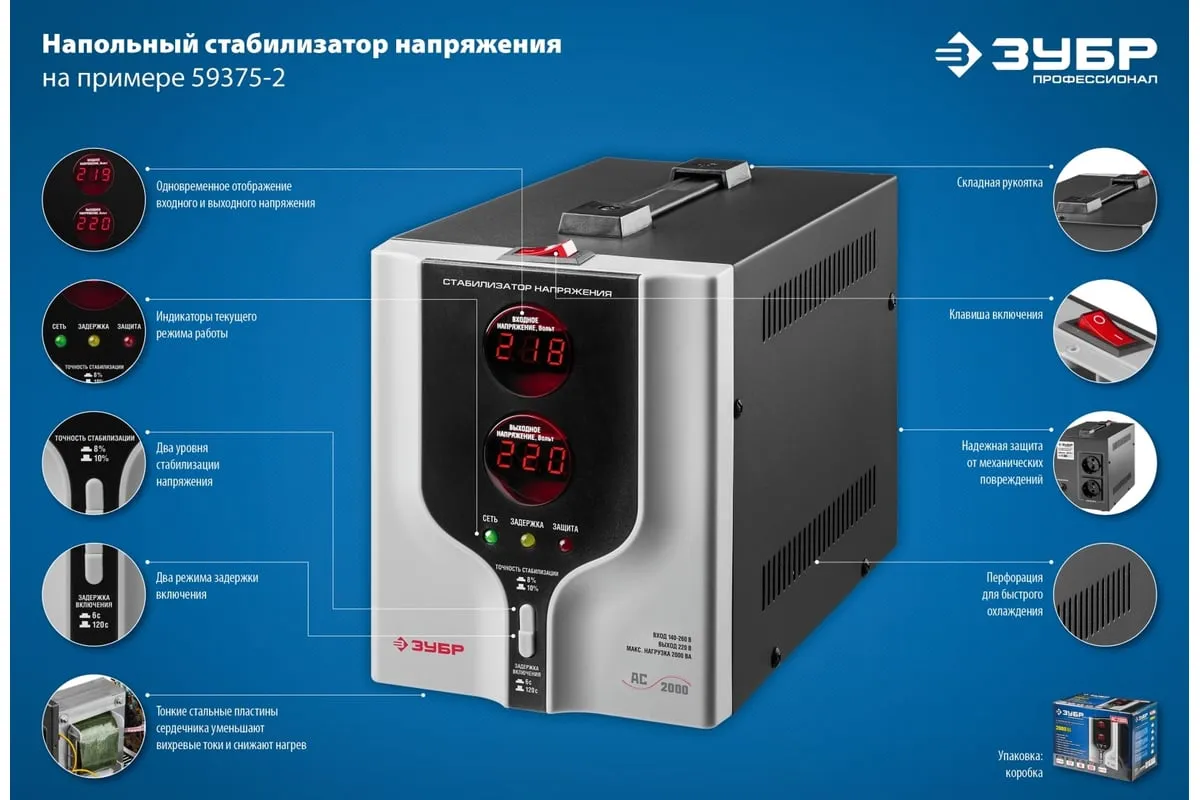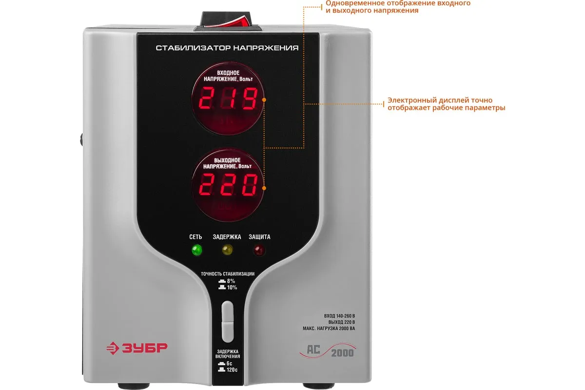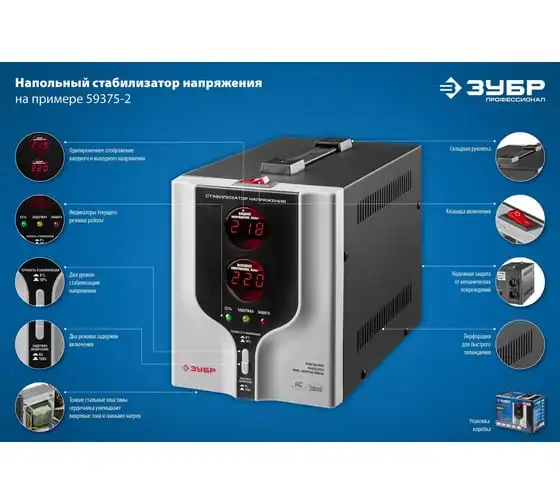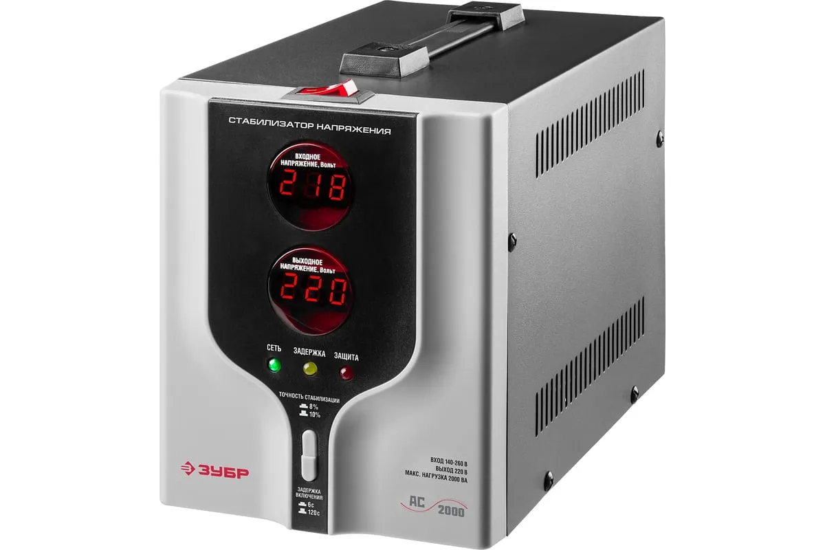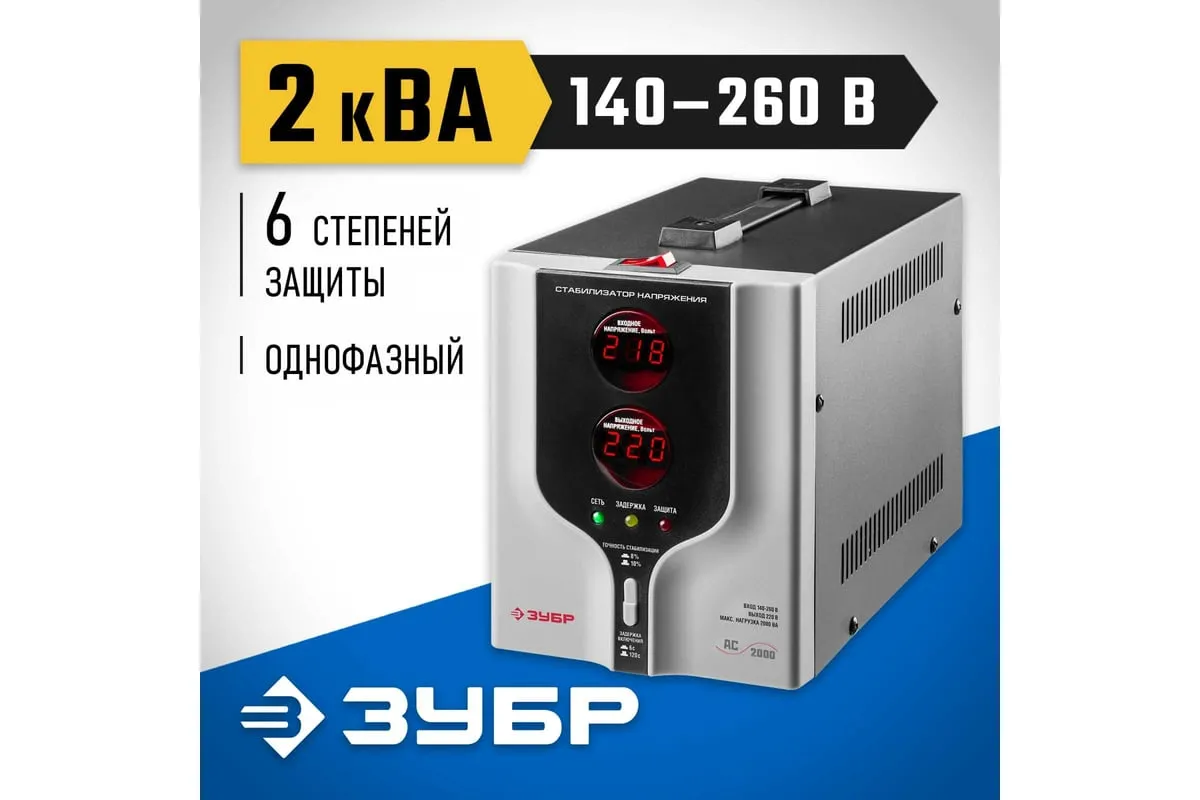 Автоматический стабилизатор с цифровой индикацией АСН-2000-1-Ц ПРОФ. Зубр 59375-2 предназначен для обеспечения безопасной работы различных бытовых приборов в условиях нестабильного напряжения. Применяется для защиты от перепадов напряжения промышленной техники, торгового оборудования, систем комплексного питания домов, квартир и офисов. Данная модельбыстро реагируети успешно справляется счастыми скачкаминапряжения. Стабилизатор имеетсветодиодную индикациюицифровые дисплеидля удобства отслеживания работы устройства.