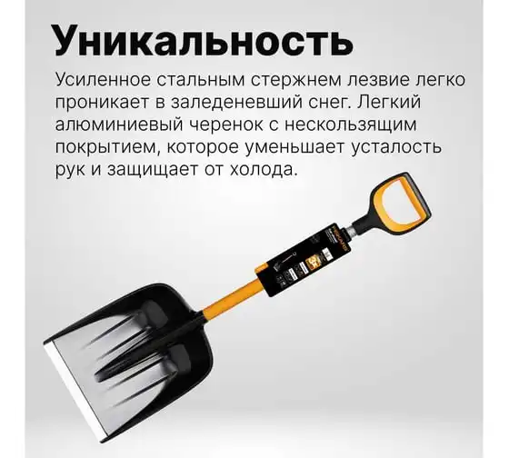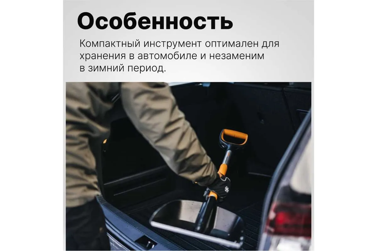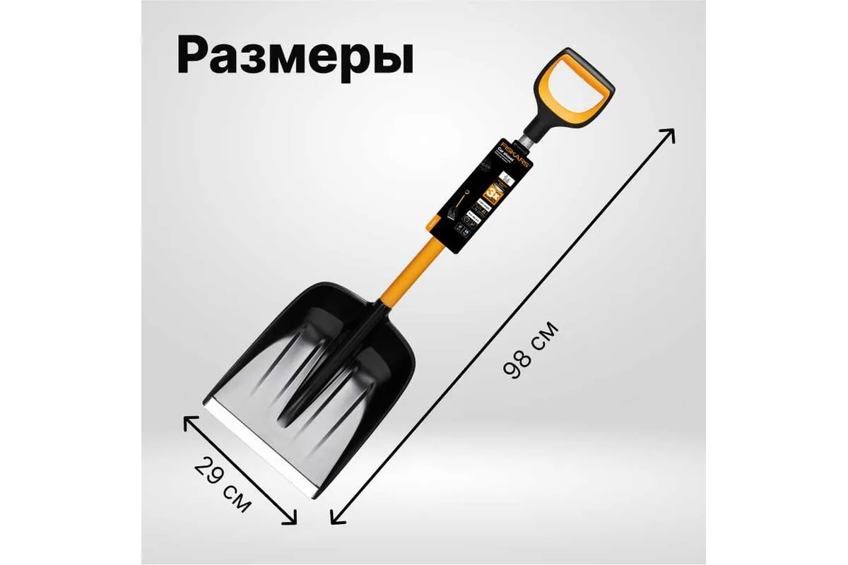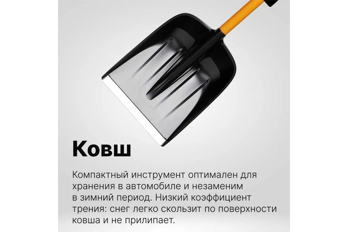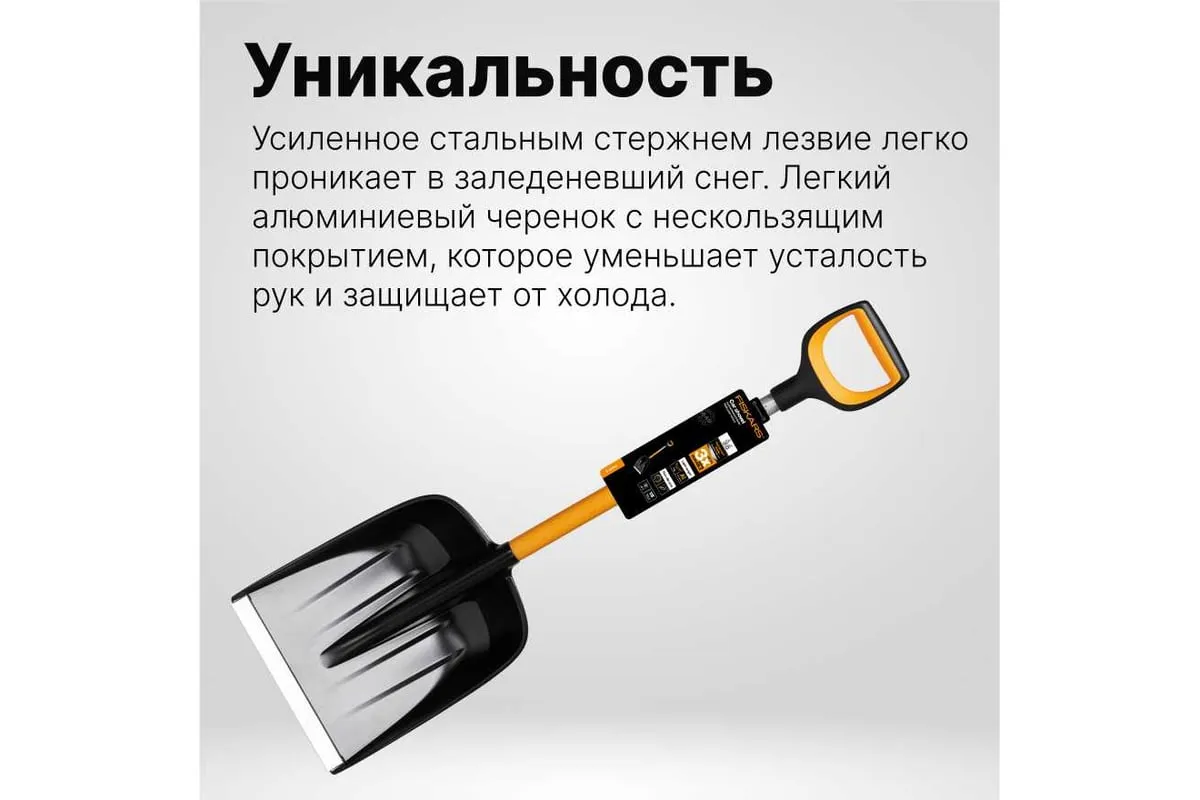 Автомобильная лопата Fiskars X-series 1057393 применяется для очистки территории от снега.