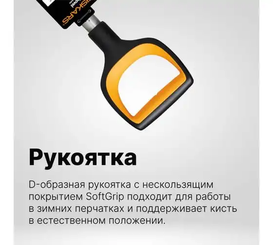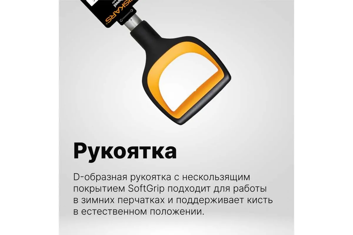 Эргономичная d-образная рукоятка обеспечивает комфортное удержание лопаты и сохраняет естественное положение кисти при работе.