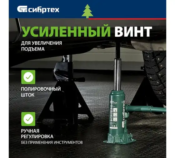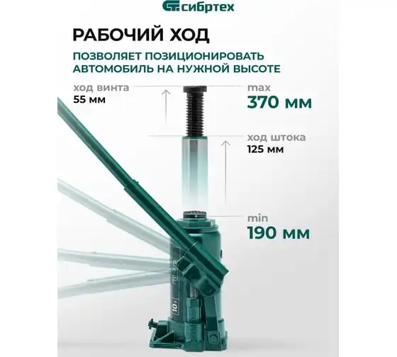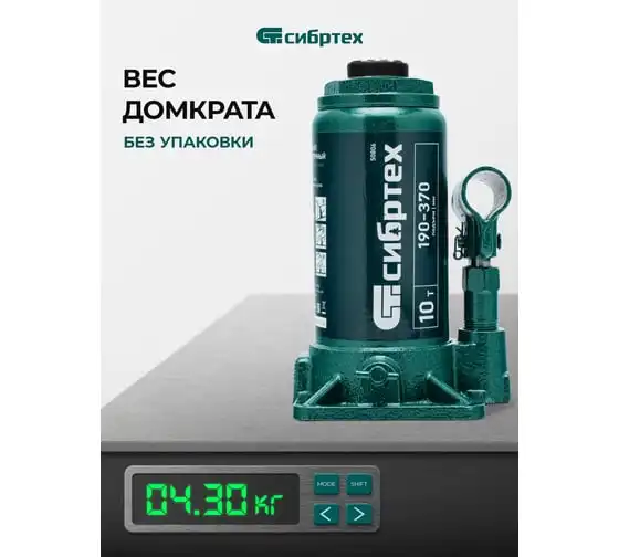 Домкрат гидравлический бутылочный СИБРТЕХ 10 т, 190-370 мм 50806