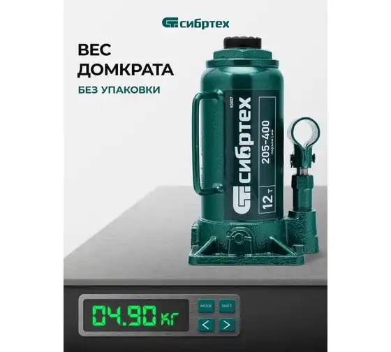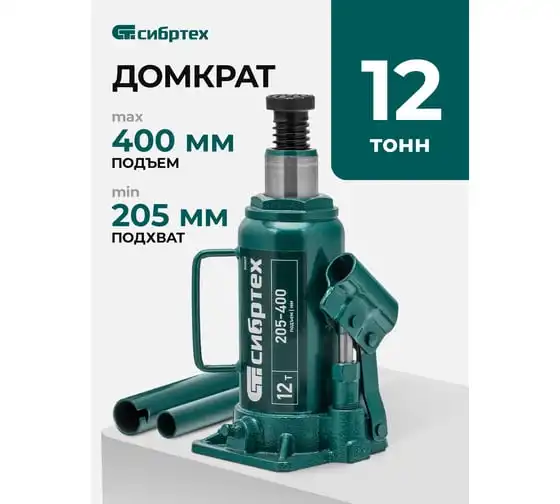 Домкрат гидравлический бутылочный СИБРТЕХ 12 т, 205-400 мм 50807