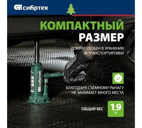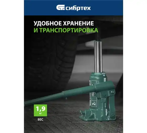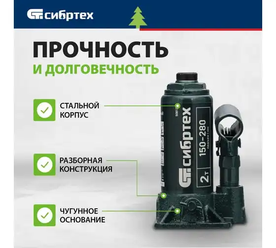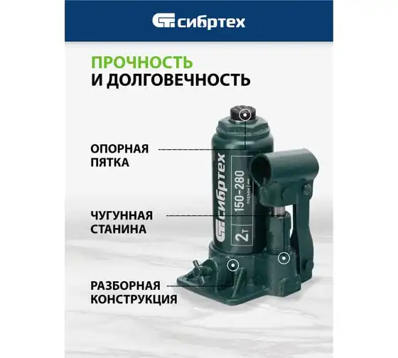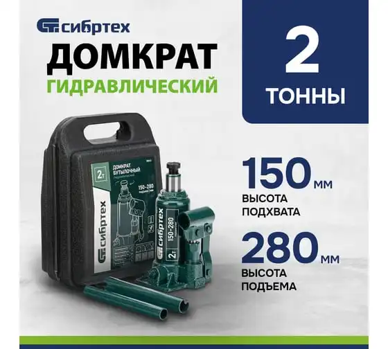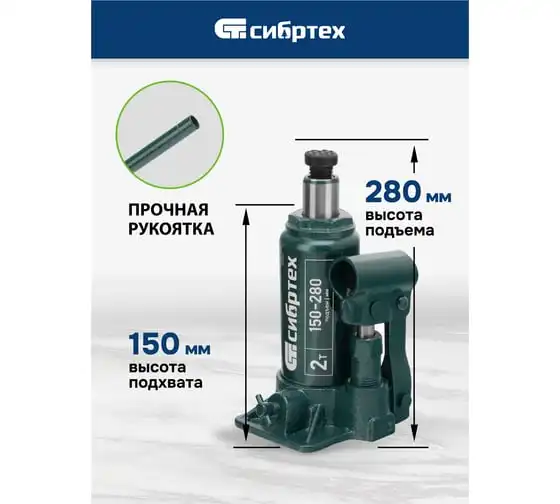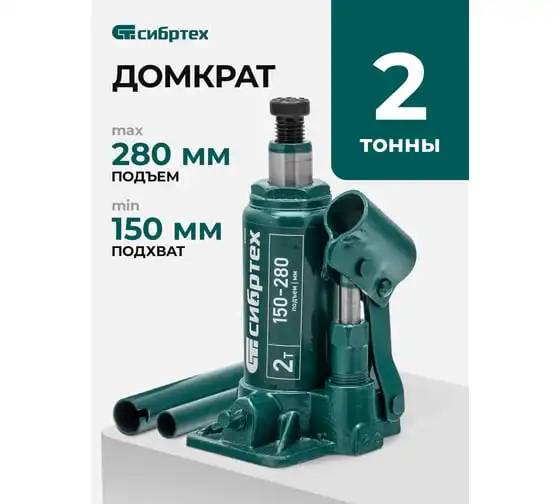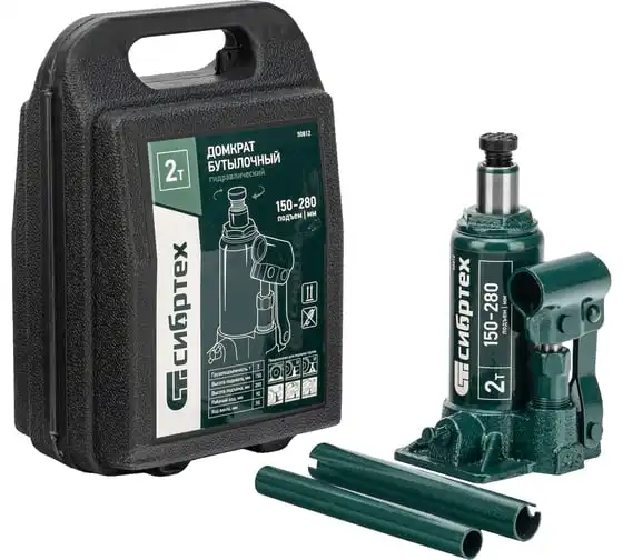 Домкрат гидравлический бутылочный СИБРТЕХ 2 т, 150-280 мм 50800