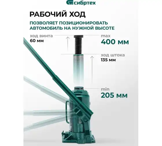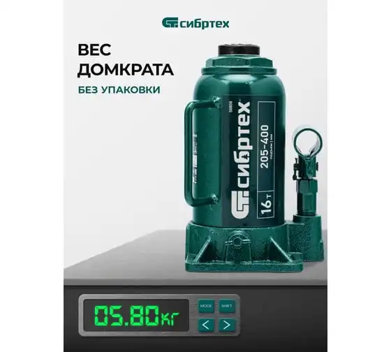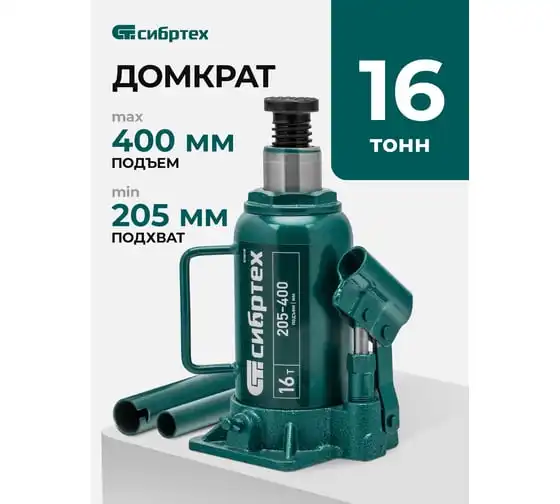 Домкрат гидравлический бутылочный СИБРТЕХ 16 т, 205-400 мм 50808