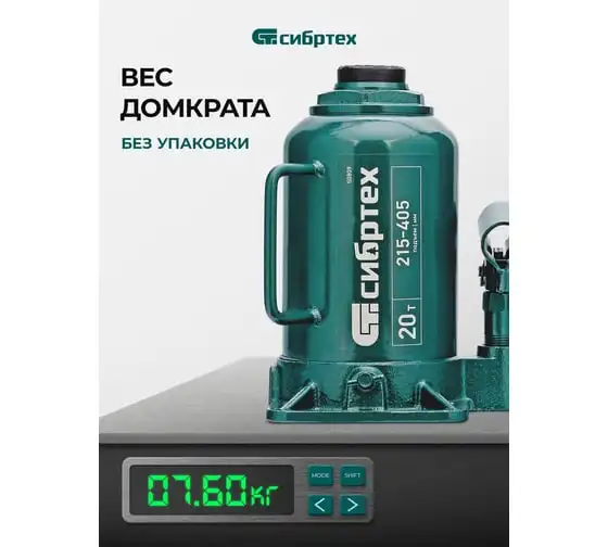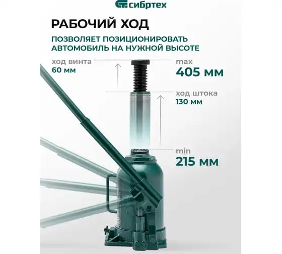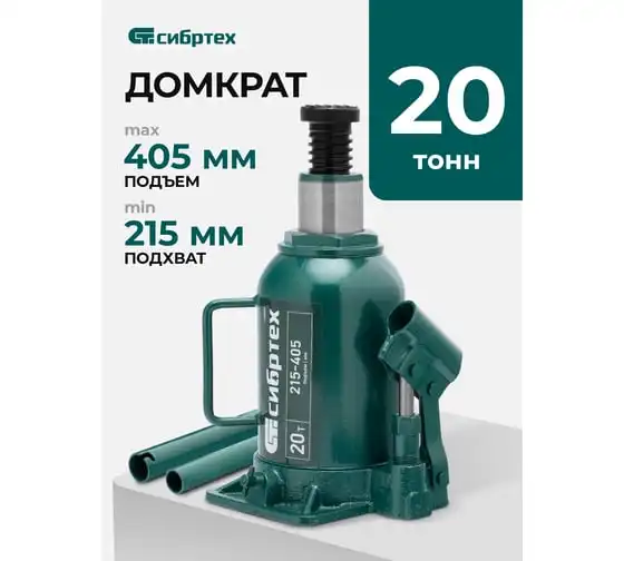 Домкрат гидравлический бутылочный СИБРТЕХ 20 т, 215-405 мм 50809