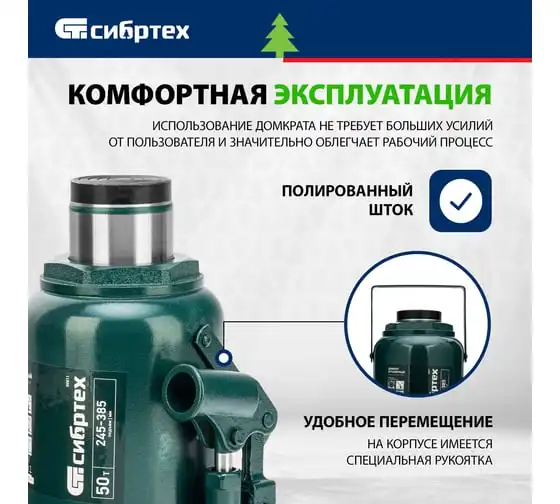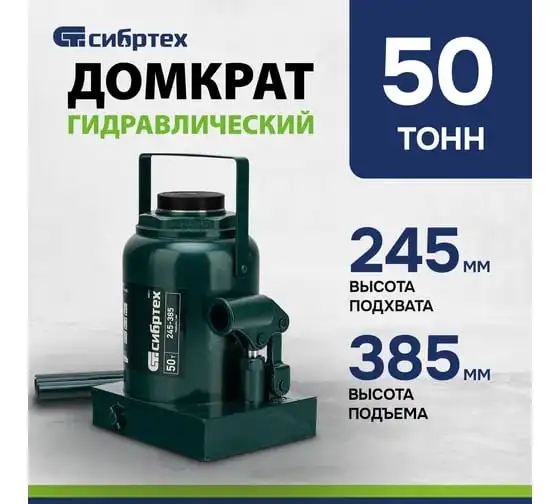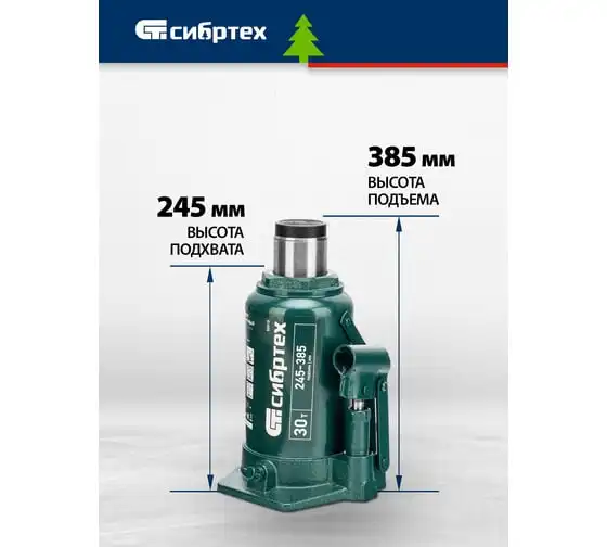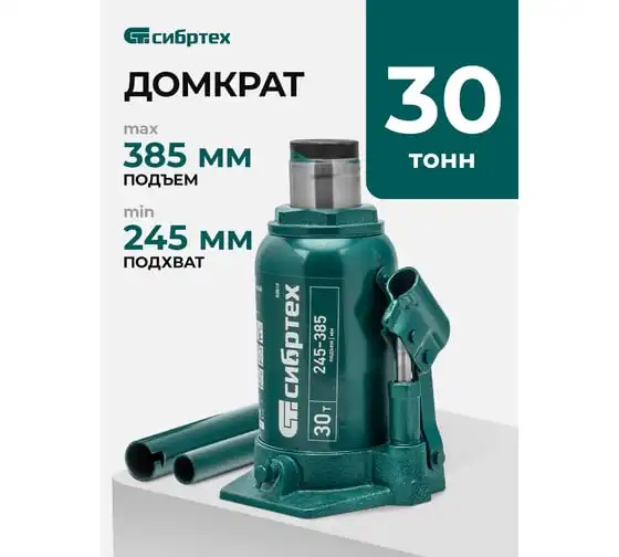 Домкрат гидравлический бутылочный СИБРТЕХ 30 т, 245-385 мм 50810