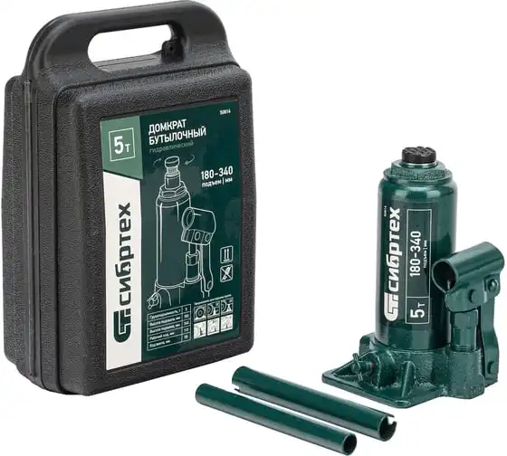 Домкрат гидравлический бутылочный СИБРТЕХ 5 т, 180-340 мм, кейс 50814