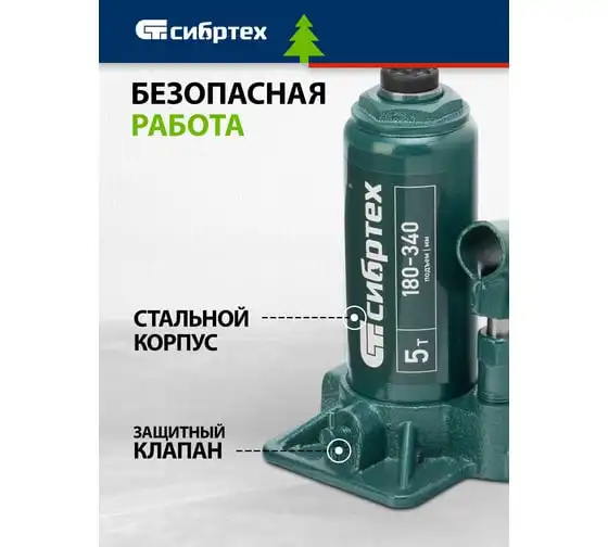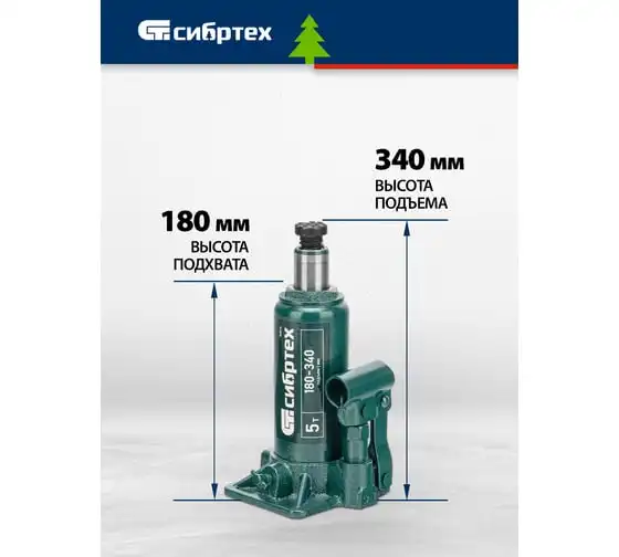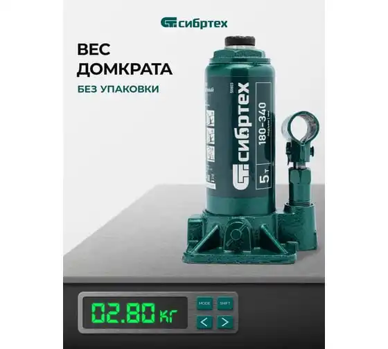 Домкрат гидравлический бутылочный СИБРТЕХ 5 т, 180-340 мм 50803