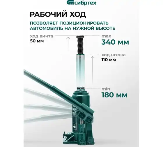 Домкрат гидравлический бутылочный СИБРТЕХ 6 т, 180-340 мм 50804