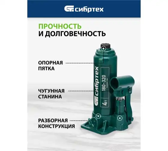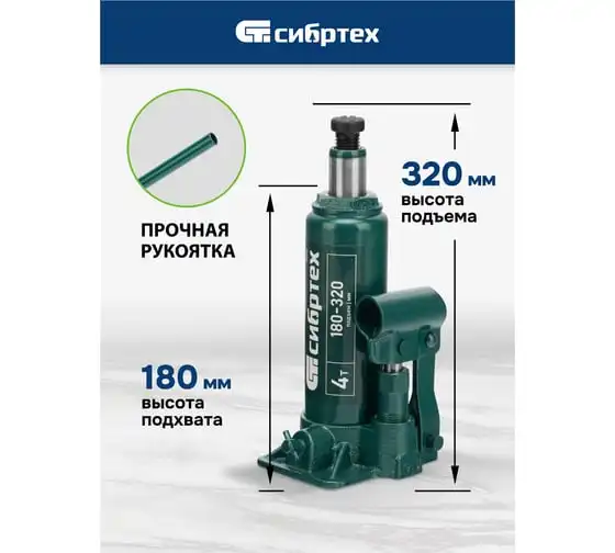 Домкрат гидравлический бутылочный СИБРТЕХ 4 т, 180-320 мм 50802
