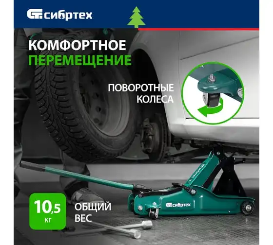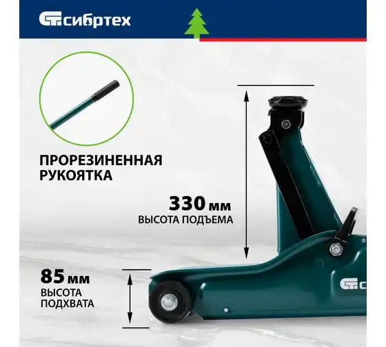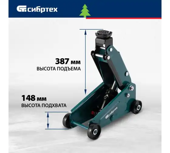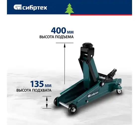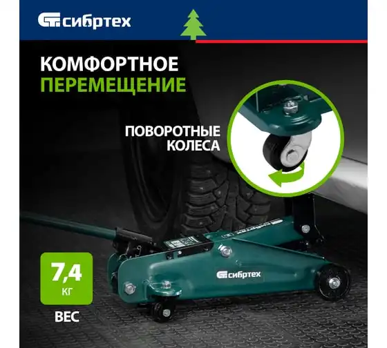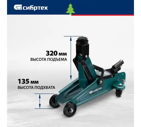 Гидравлический подкатной домкрат СИБРТЕХ 2 т, 127-330 мм 50832