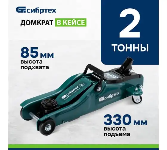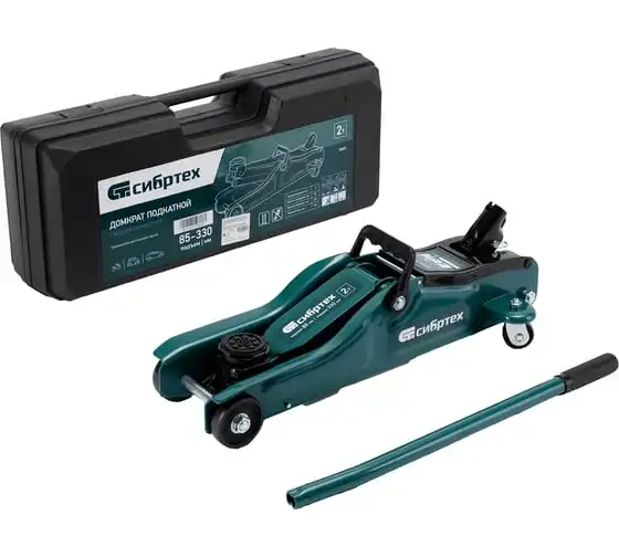 Гидравлический подкатной домкрат СИБРТЕХ 2 т, 85-330 мм, низкий подхват, в пласт. кейсе 50831