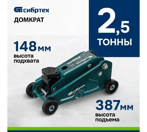 Домкрат гидравлический подкатной, 2,5 т, 140-387 мм СИБРТЕХ 50836