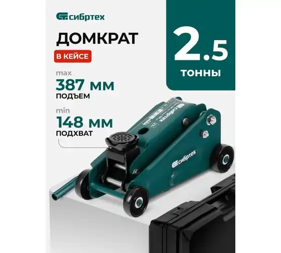 Гидравлический подкатной домкрат СИБРТЕХ 2,5 т, 140-387 мм, в пластиковом кейсе 50837