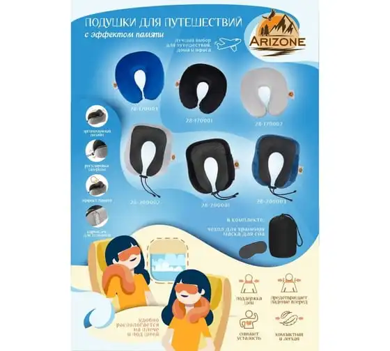 Подушка для путешествий с эффектом памяти ARIZONE синяя, 28-170003