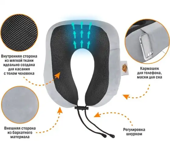 Подушка для путешествий с эффектом памяти ARIZONE черная 28-170001