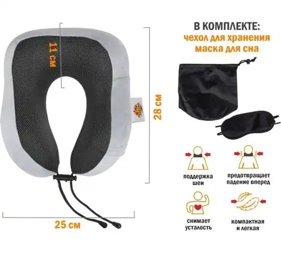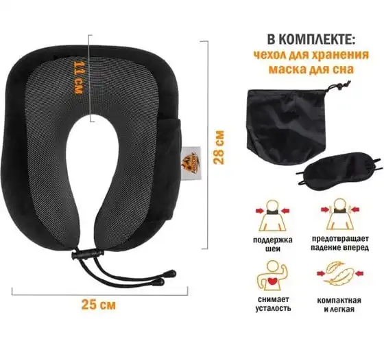 Подушка для путешествий с эффектом памяти Arizone набор (маска для сна, чехол), черный 28-200001