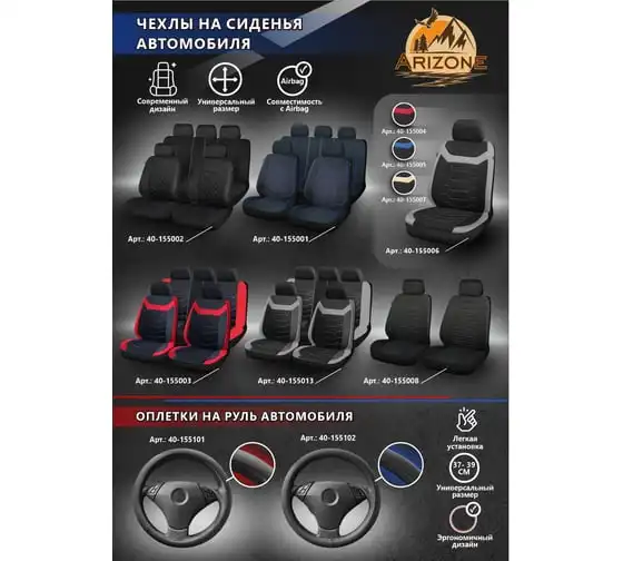 Чехлы на сиденья автомобиля Arizone универсальные, полиэстер, черно-серые 40-155013 ЦЗ-0727291500