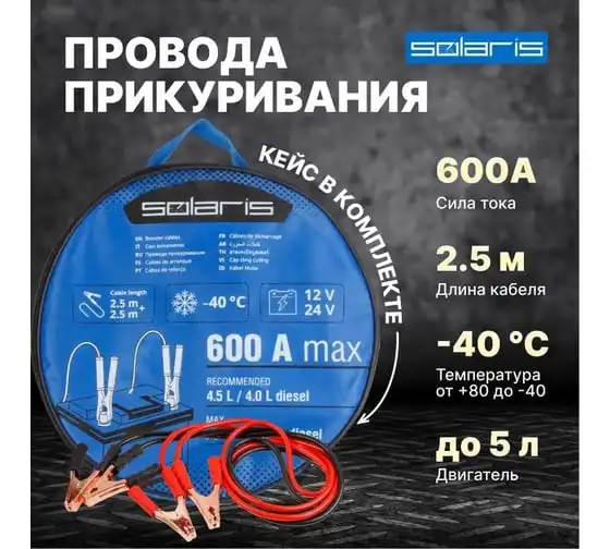 Провода прикуривания SOLARIS 600 ампер SL2910-3
