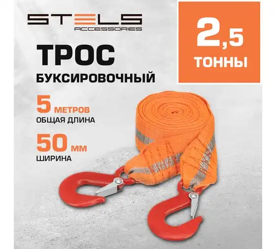 Трос буксировочный (2,5 тонны; 2 крюка) STELS 54377