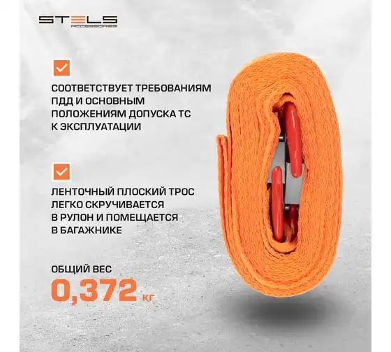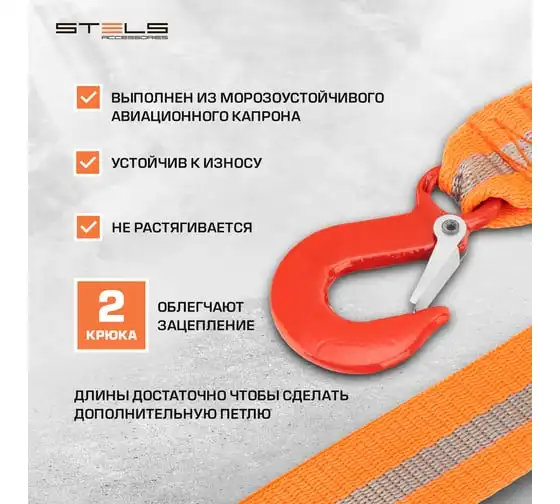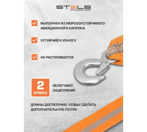 Трос буксировочный (3,5 тонны; 2 крюка) STELS 54379