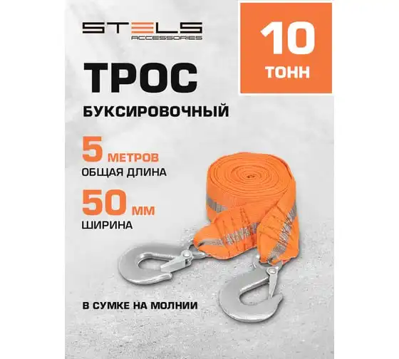 Буксировочный трос STELS 10 тонн 2 крюка, сумка на молнии Россия 54383