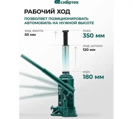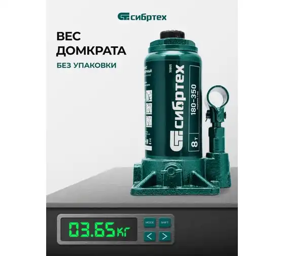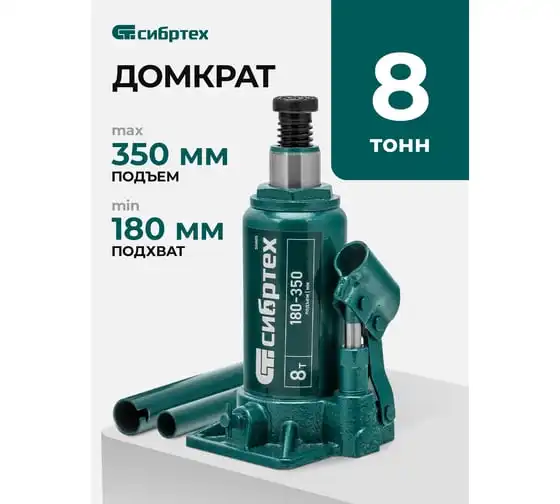 Домкрат гидравлический бутылочный СИБРТЕХ 8 т, 180-350 мм 50805