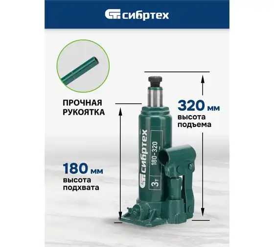 Домкрат гидравлический бутылочный СИБРТЕХ 3 т, 180-320 мм 50801