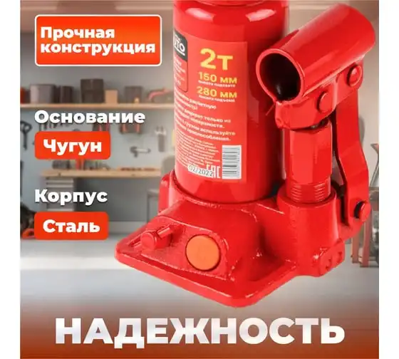 Домкрат гидравлический бутылочный СИБРТЕХ 2 т, 150-280 мм 50800