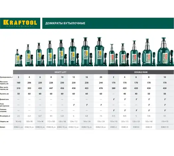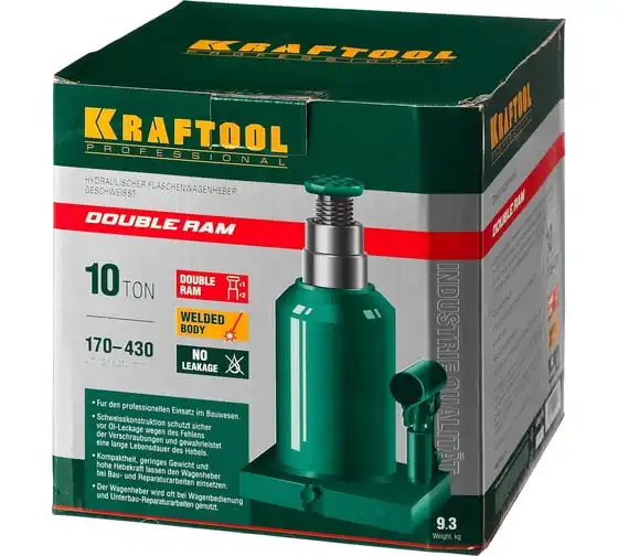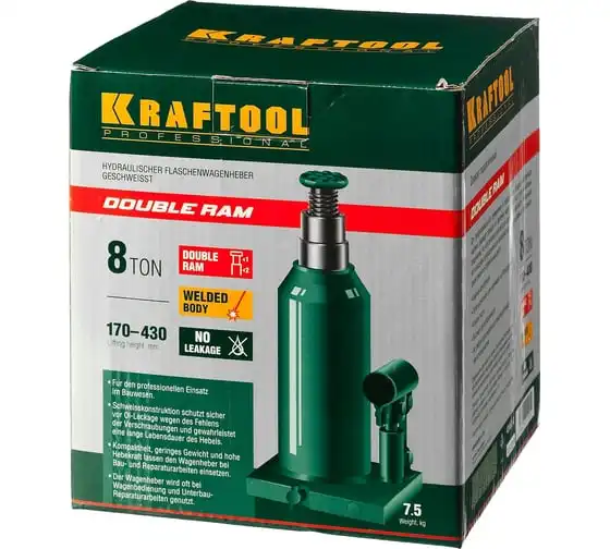 Гидравлический бутылочный телескопический домкрат KRAFTOOL Double ram 8т, 170-430мм 43463-8
