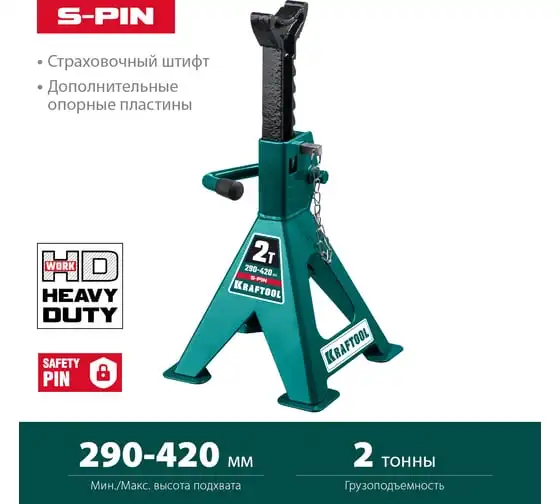 Страховочная усиленная подставка со штифтом KRAFTOOL S-PIN 2 т, 290-420 мм 43465-2
