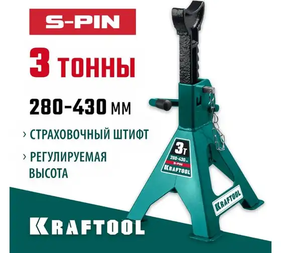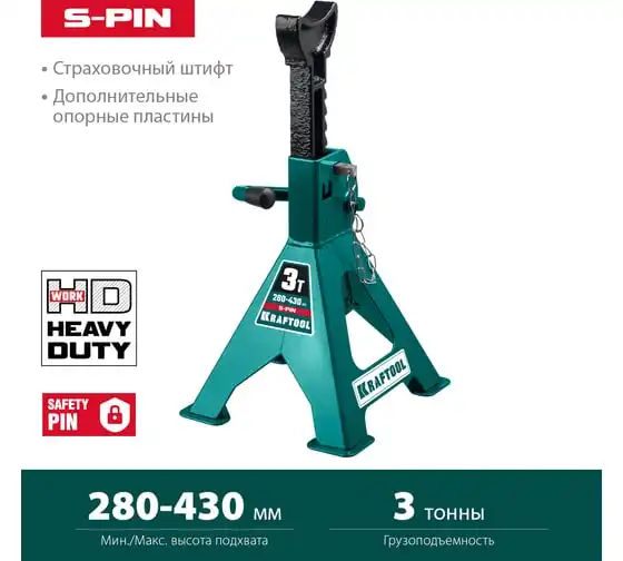 Cтраховочная усиленная подставка со штифтом KRAFTOOL S-PIN 3 т, 280-430 мм 43465-3