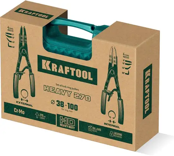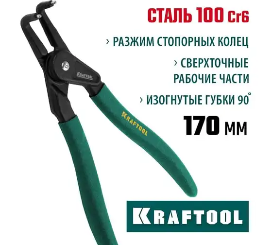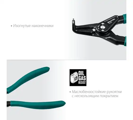 Съемник внешних стопорных колец KRAFTOOL с изогнутыми губками 180 мм 22812-4