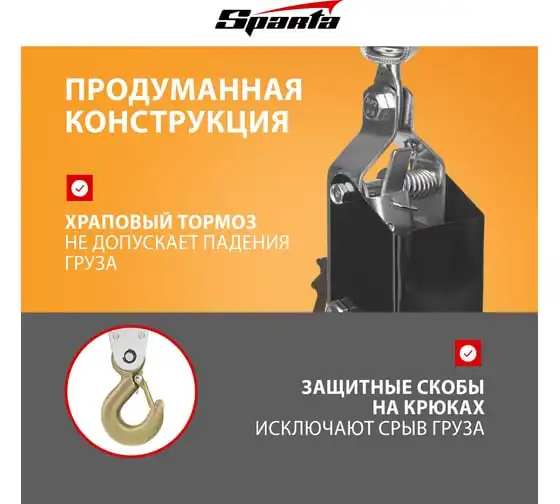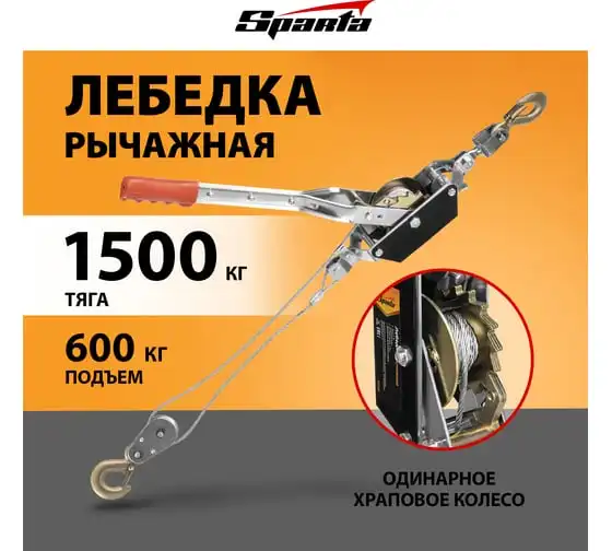Рычажная лебедка SPARTA тяга - 1.5 т, подъем - 0.6 т, одинарное храповое колесо 522155