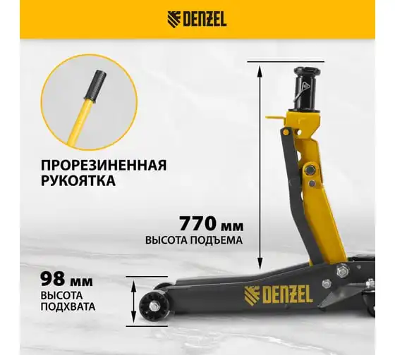 Домкрат гидравлический подкатной Denzel 2/3т, 98-770мм, быст. подъем, низ. подхват, проф,suv 51270