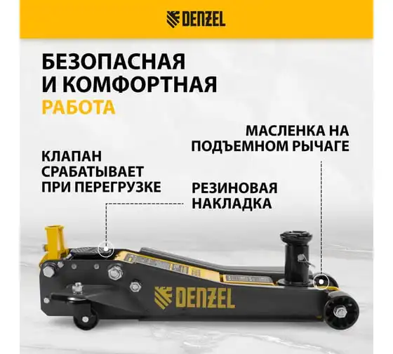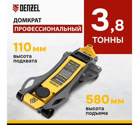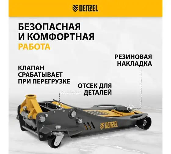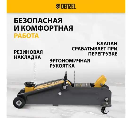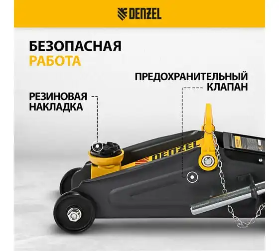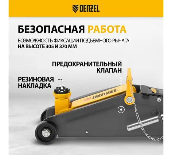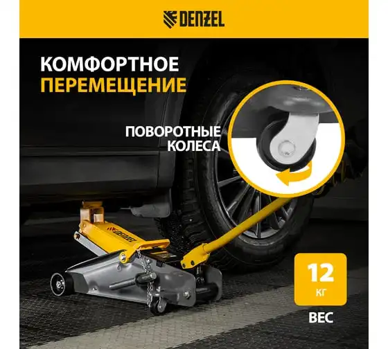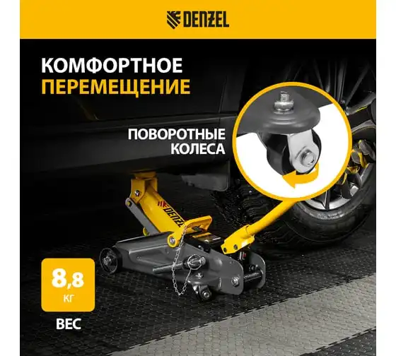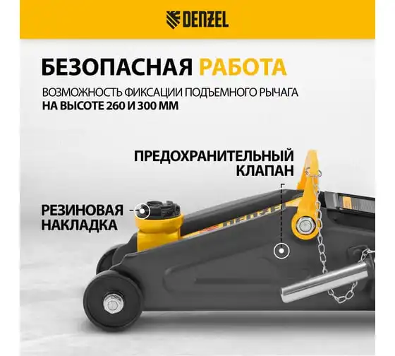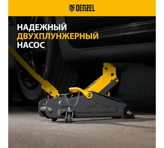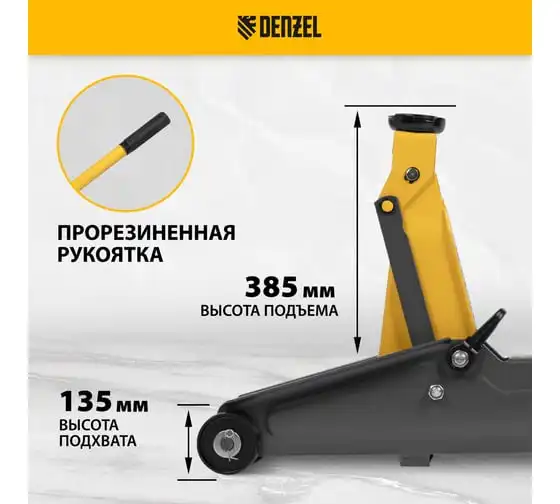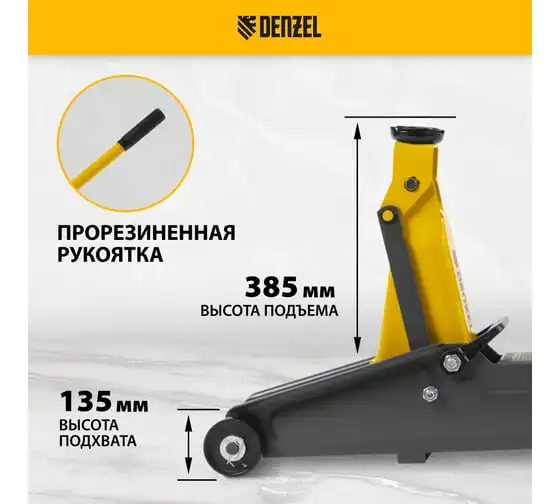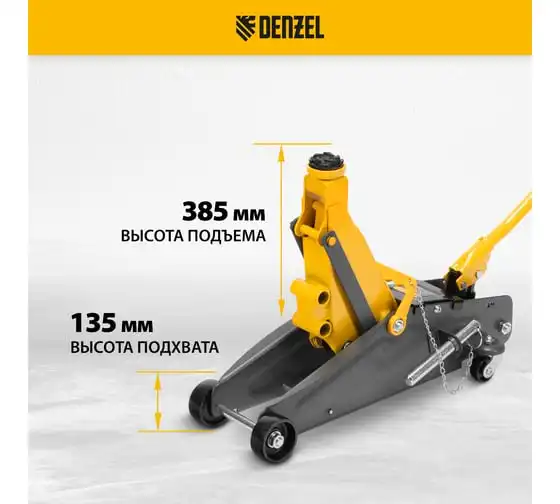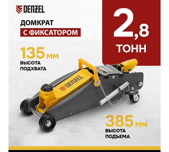 Гидравлический подкатной домкрат Denzel с фиксатором, 2.8 т, 135-385 мм 51155
