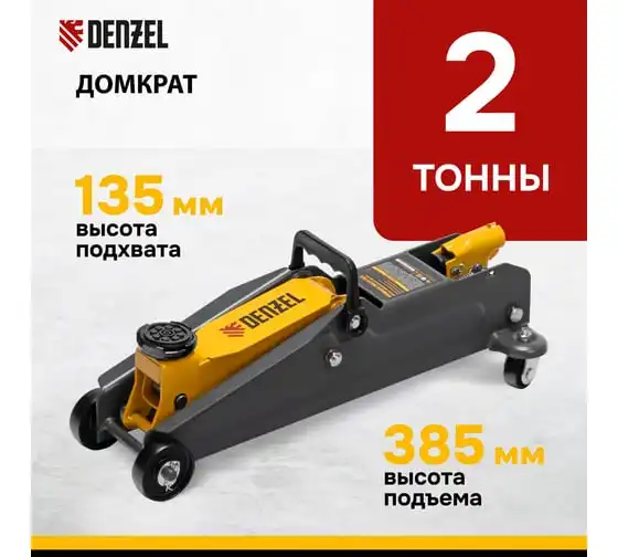 Домкрат гидравлический подкатной Denzel 2 т, 135-385 мм 51230