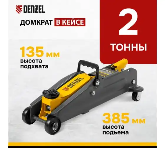 Домкрат гидравлический подкатной Denzel 2 т, 135-385 мм, в пластиковом кейсе 51231