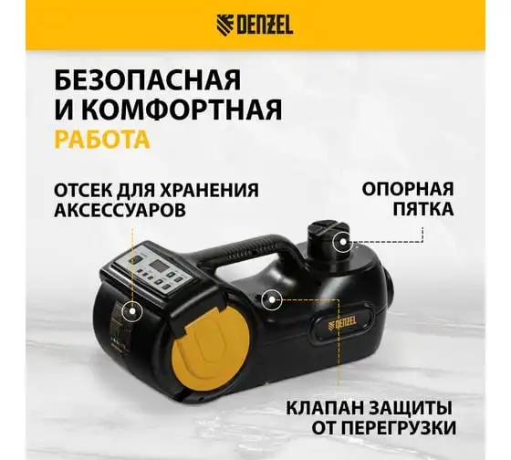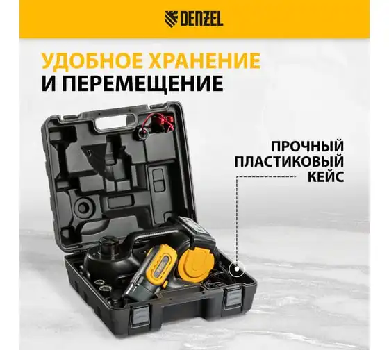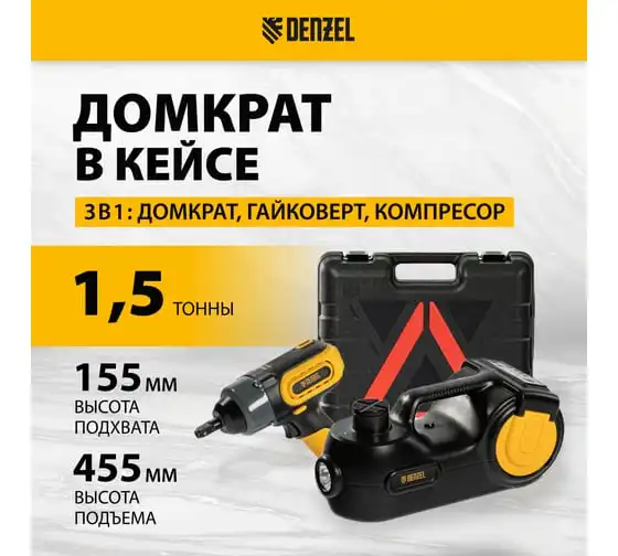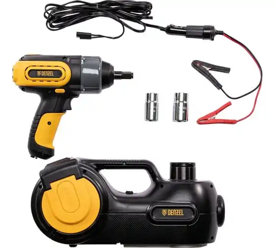 Электрогидравлический домкрат Denzel «3 в 1» 1.5 т, 12 В, набор с электрическим гайковертом 51190