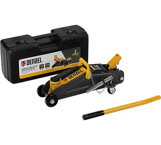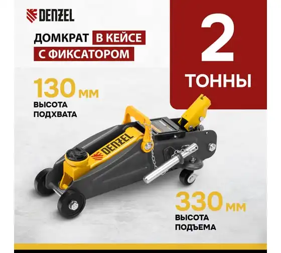 Гидравлический подкатной домкрат Denzel с фиксатором, 2 т, 130-330 мм, в кейсе 51154