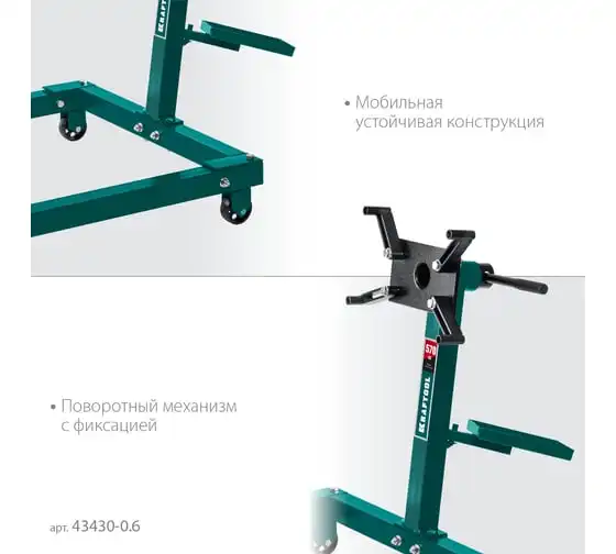 Стенд для двигателя KRAFTOOL поворотный, 0.57 т 43430-0.6