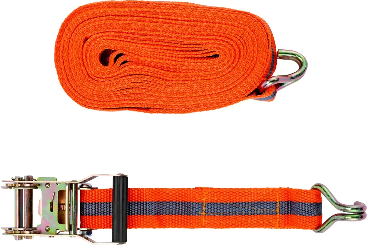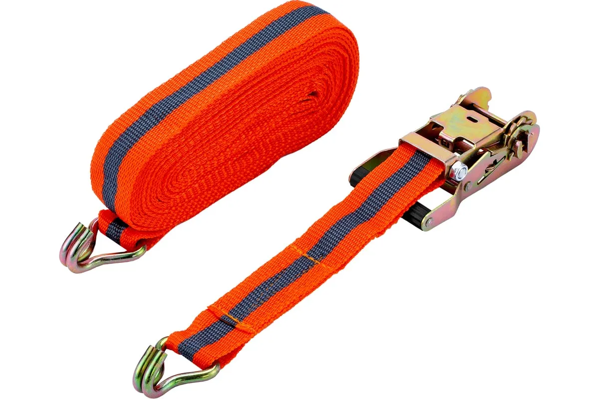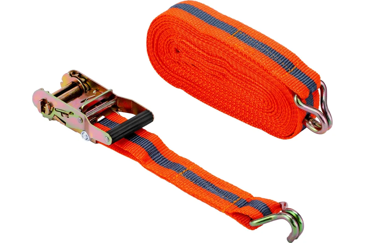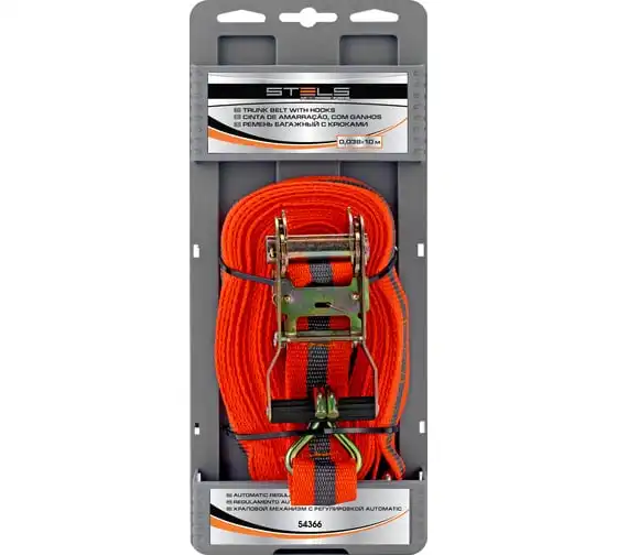 Багажный ремень с крюками Stels 54366, 0,038 х 10 м, с храповым механизмом Automatic, помогает закрепить груз в открытом багажнике на крыше легковой автомашины или в прицепе. Изготовлен из прочного и износостойкого полиэстера. Устойчив к коррозии, поэтому прослужит долго. Пригодится при транспортировке различных предметов.