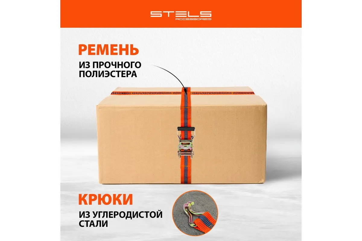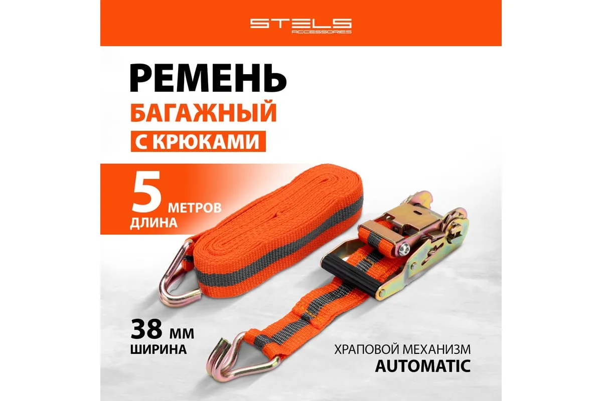 Багажный ремень с крюками Stels 54365, 0,038 х 5 м, с храповым механизмом Automatic, помогает закрепить груз в открытом багажнике на крыше легковой автомашины или в прицепе. Изготовлен из прочного и износостойкого полиэстера. Устойчив к коррозии, поэтому прослужит долго. Пригодится при транспортировке различных предметов.