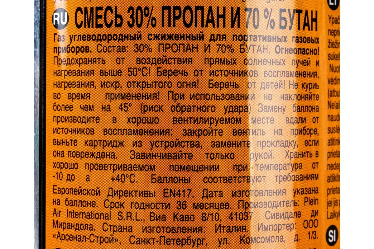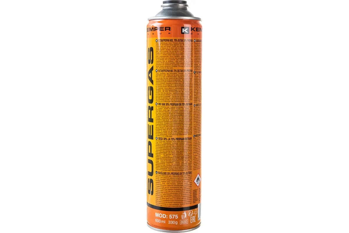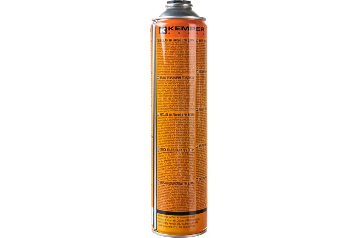 Баллон KEMPER 575 предназначен для газовых горелок и паяльных ламп. Заправлен смесью бутана — 70% и пропана — 30%. Температура пламени достигает 1900°С. Температура пламени с использованием кислорода — до 2850°С. Объем газа в баллоне — 600 мл. Резьба — 7/16 дюйма. Баллон допускает многократное присоединение/отсоединение к оборудованию.