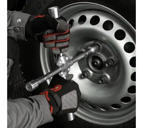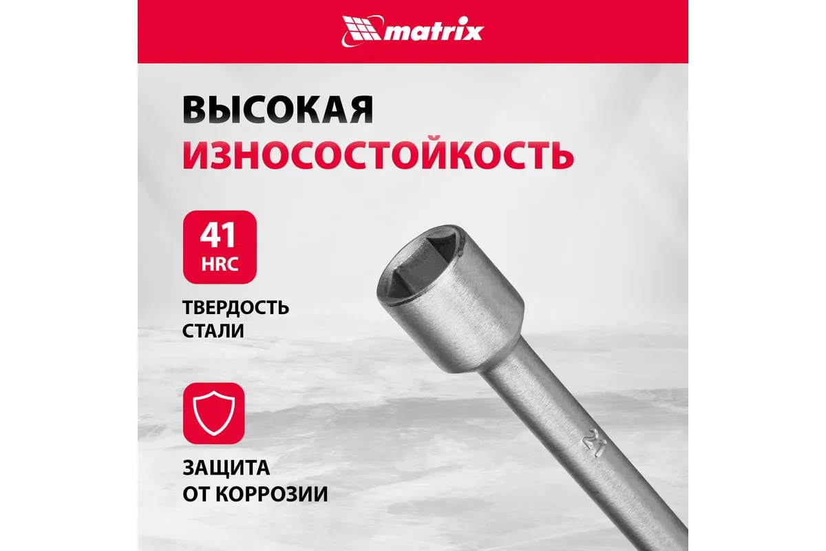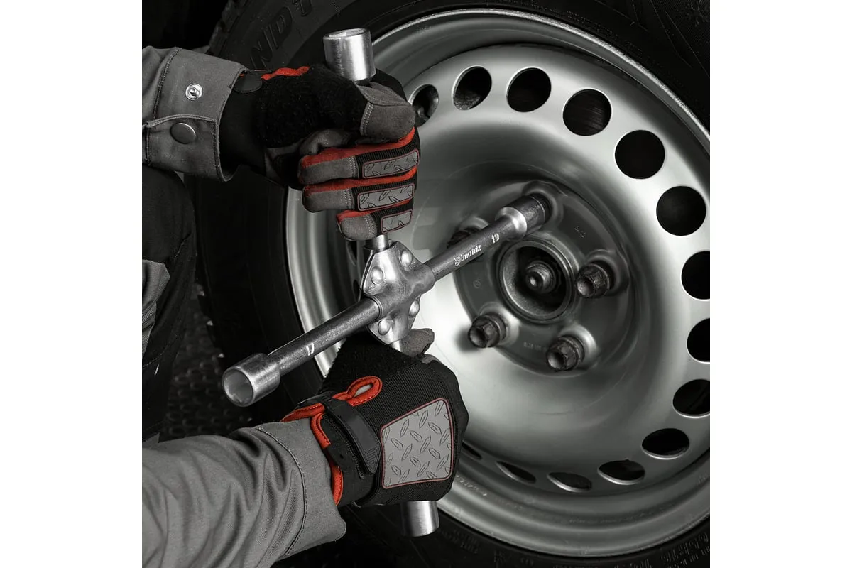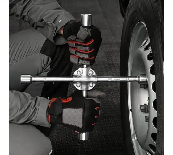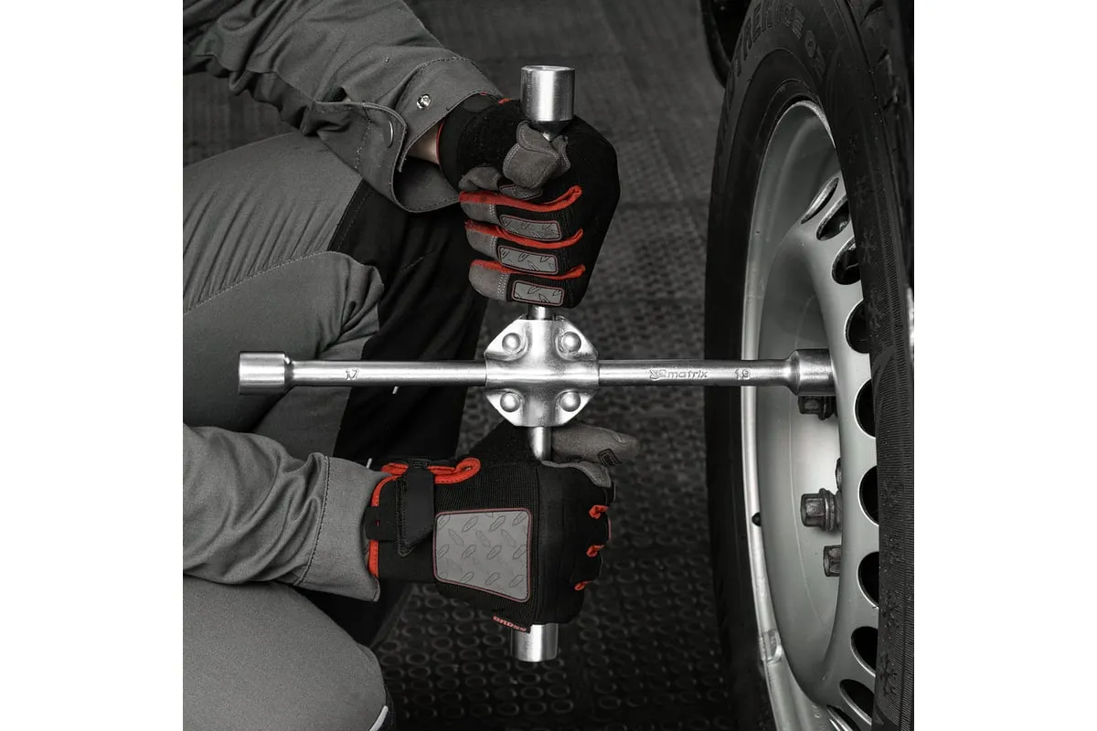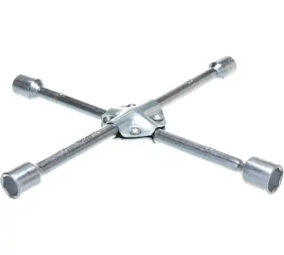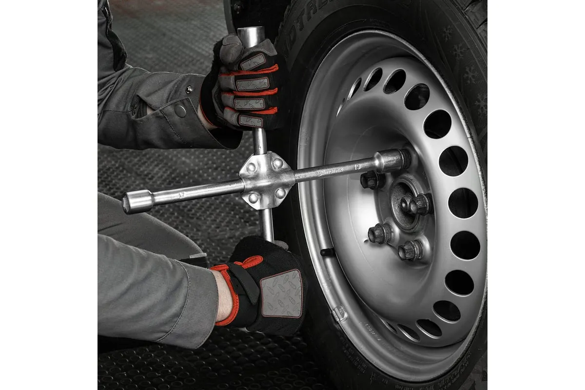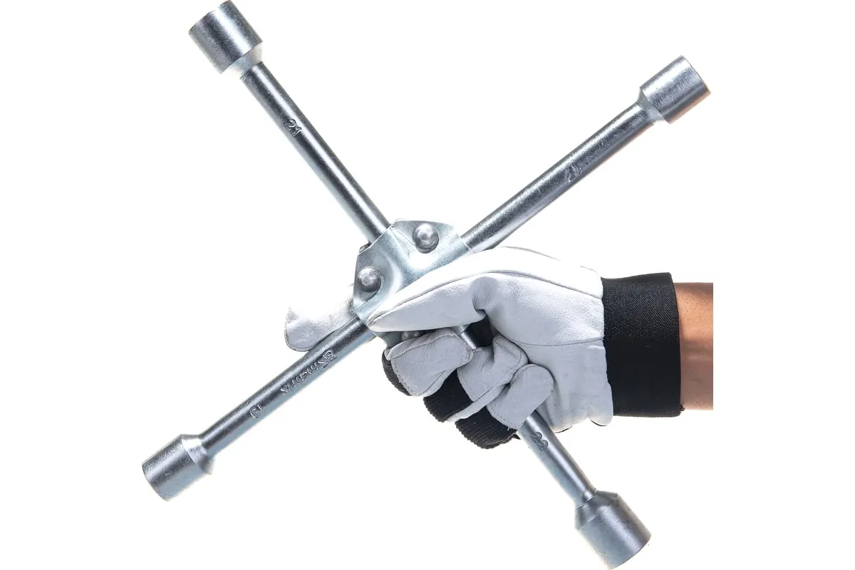 Баллонный ключ-крест MATRIX PROFESSIONAL, 14244, 17х19х21х22 мм представляет собой специализированный инструмент. Он необходим при замене колес автомобиля для вкручивания и выкручивания соединительных болтов. Ключ-крест изготавливается из углеродистой стали и имеет 4 несъемные торцевые головки с 6-гранным зевом. Ключ имеет утолщенный диаметр прута.
