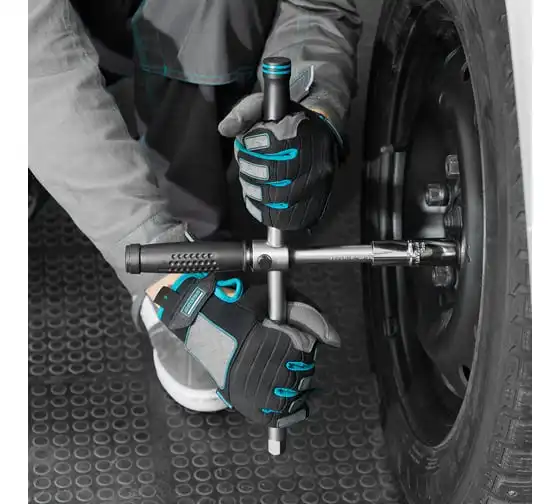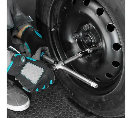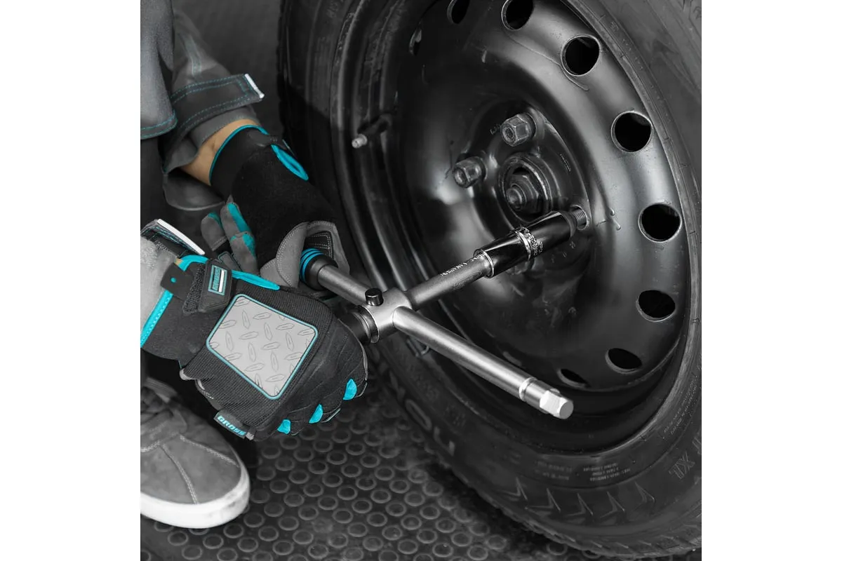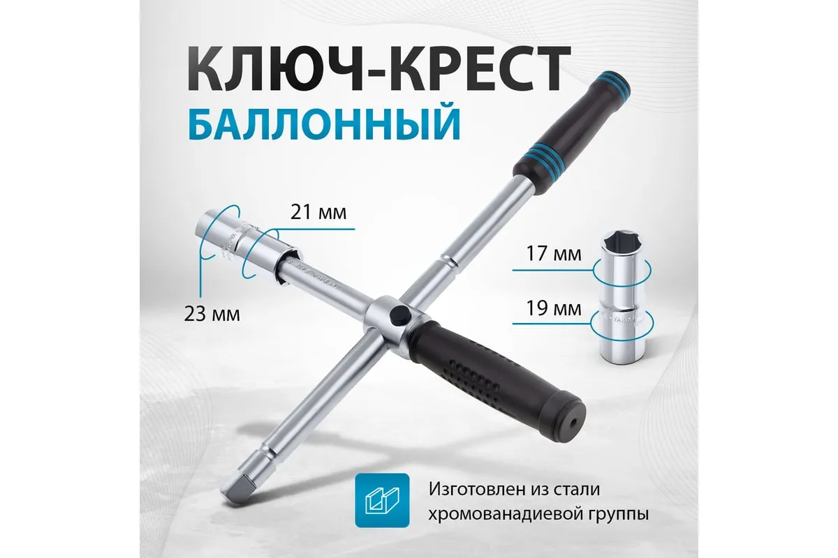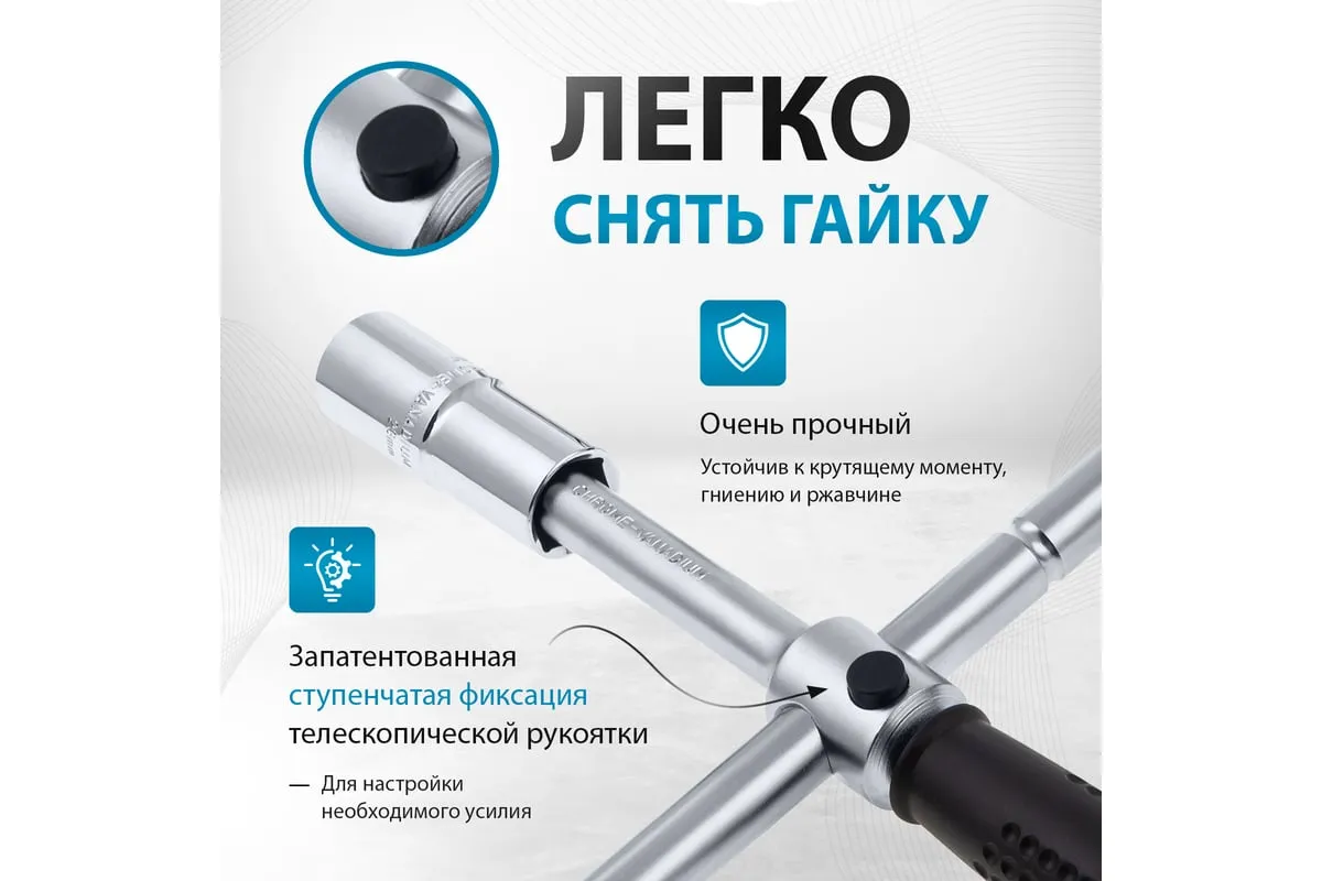 Баллонный ключ-крест с изменяющимся рычагом GROSS 14270 - это стальной ключ с присоединительным квадратом 1/2, который используется для монтажа и демонтажа резьбовых соединений, например, при замене автомобильных колес. Он сделан из хромованадиевой стали.