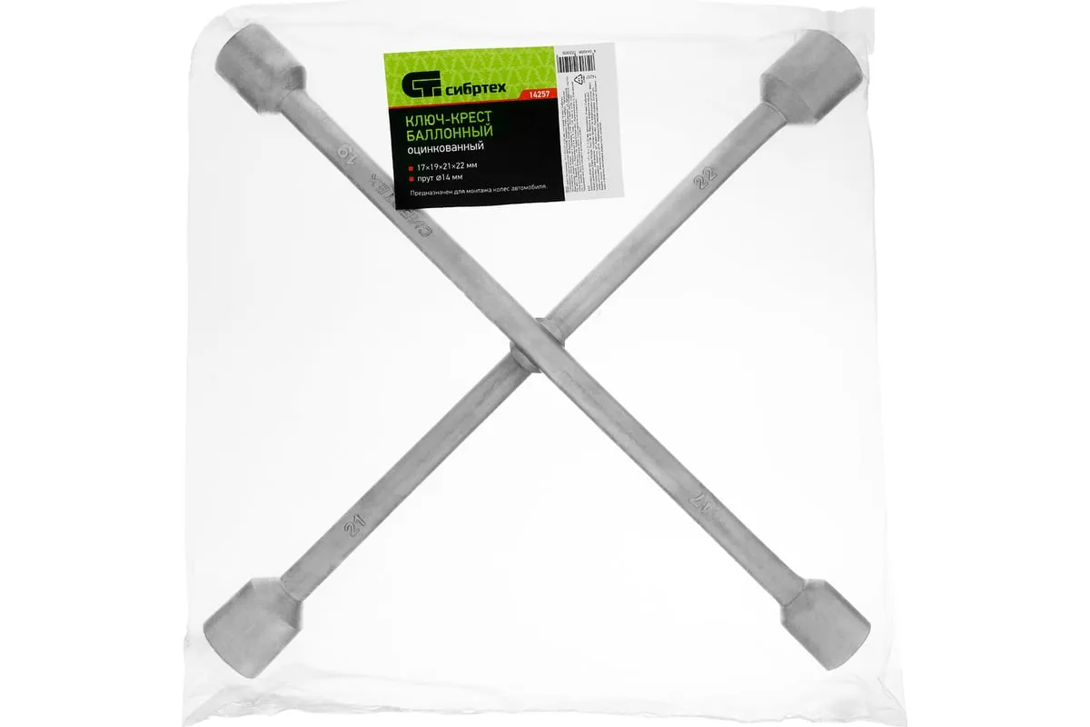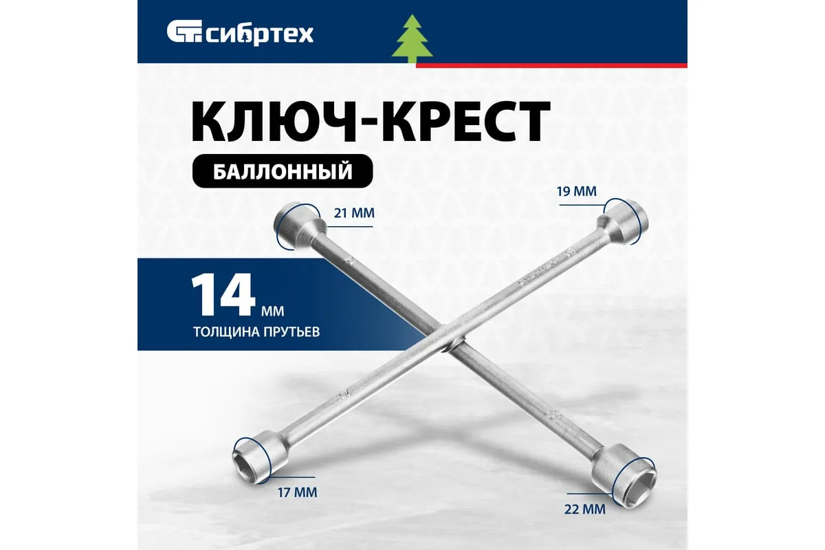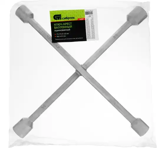 Баллонный ключ-крест СИБРТЕХ 14257 необходим при замене колес автомобиля для вкручивания и выкручивания соединительных болтов. Ключ-крест изготавливается из углеродистой стали и имеет 4 несъемные торцевые головки с 6-гранным зевом и присоединительный квадрат 1/2. Твердость материала рабочих частей ключа соответствует требованиям ГОСТа